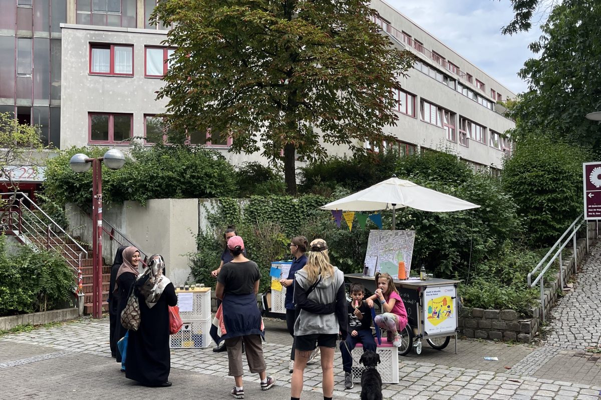 Mit dem dreitägigen Einsatz des Kiezlabor-Fahrrads vom 14.-16. Juli 2025 wurde ein erster Schritt unternommen, um den Kiez kennenzulernen, Vertrauen aufzubauen und relevante Themen gemeinsam mit Bewohnenden und Akteur:innen zu erkunden. Ziel war es, lokale Perspektiven sichtbar zu machen, Beteiligungsmöglichkeiten auszuloten und die Eignung des Standorts für eine längere Präsenz des Kiezlabors einzuschätzen. Gemeinsam mit Nachbarschaft, Verwaltung und Initiativen wurde an lokalen Themen gearbeitet. Im Fokus stand die Nutzung öffentlicher Räume und der neue Nachbarschaftsgarten “Rollberg Paradise”. Dies geschah auch vor dem Hintergrund, dass das Quartiersmanagement vor Ort 2027 ausläuft.